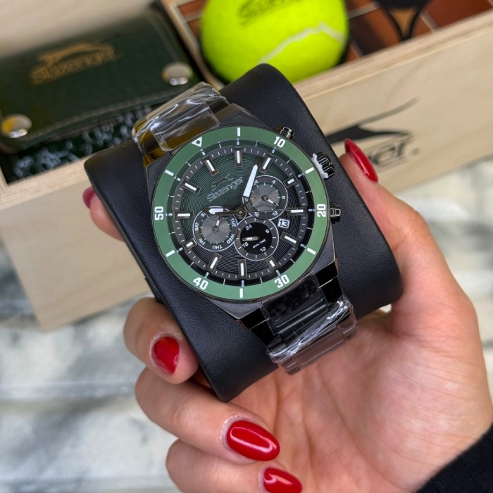 برند Slazenger در سال 1881 در انگلستان تأسیس شد و سابقهای نزدیک به 150 سال در صنعت کالاهای ورزشی دارد. این برند در ابتدا بهعنوان یک سازندهی معتبر لوازم ورزش شناخته میشد و حتی در مسابقات معتبر جهانی نیز حضور داشته است. از سالهای نخست فعالیت، اسلازنجر بهدلیل کیفیت بالا و همکاری با ورزشکاران حرفهای در ورزشهایی مانند تنیس شناخته شد.ویژگی ساعت های اسلازنجر